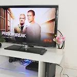 Badeværelset har separat toilet og en bruser, mens værelse har tv med mange kanaler og et fladskærms TV med satellitkanaler.